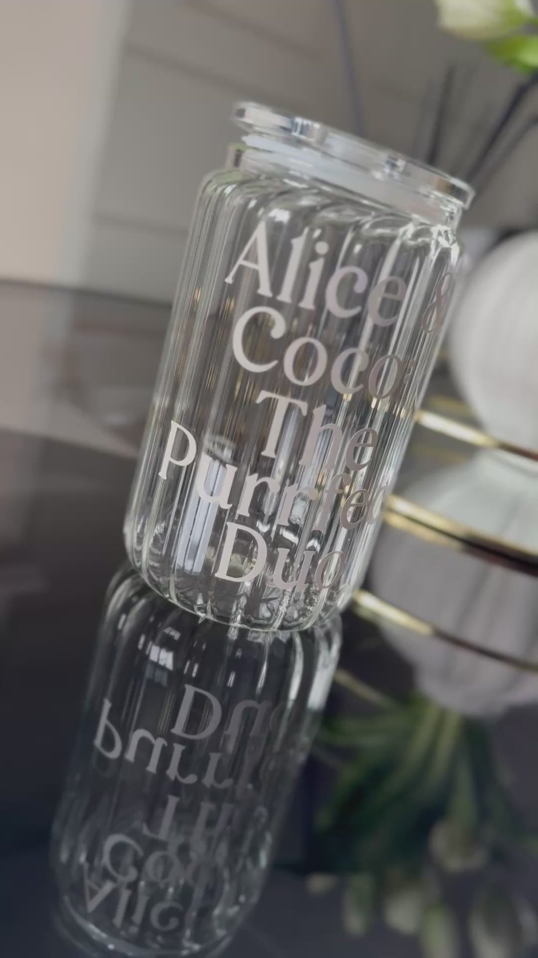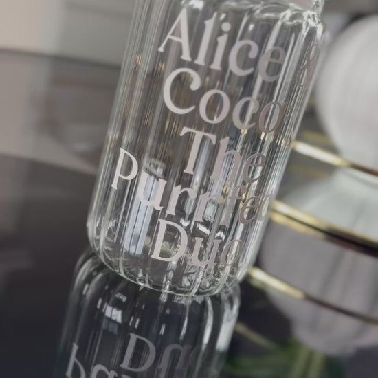 Enjoy your favourite drinks in style with our Personalised Ribbed Glass Tumbler! Perfect for iced coffee, tea, smoothies, or any cold beverage, this elegant ribbed glass tumbler is a must-have for any cat lover or drink enthusiast. Featuring a custom name or message in high-quality vinyl, it makes a stylish and thoughtful gift.