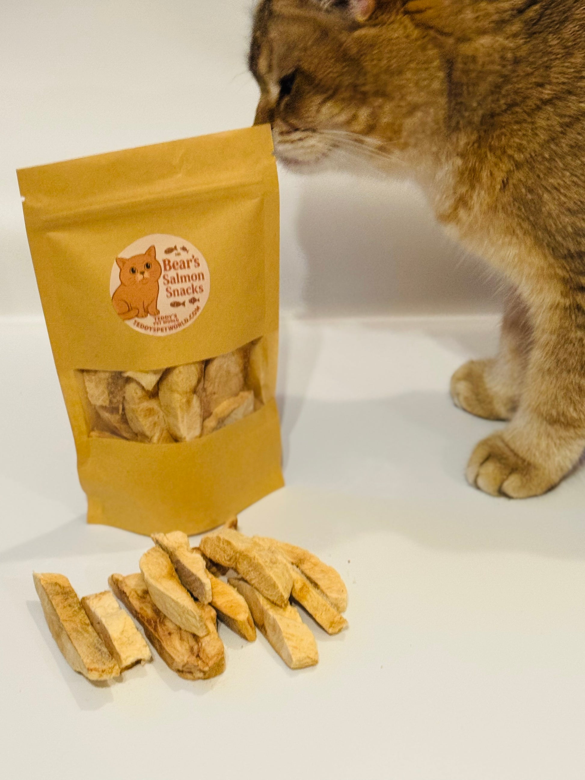 Packed with natural omega-3 fatty acids, Bear’s Salmon Snacks promote a shiny coat and healthy joints. These crunchy cubes are made from real salmon, freeze-dried to preserve every bite of goodness.